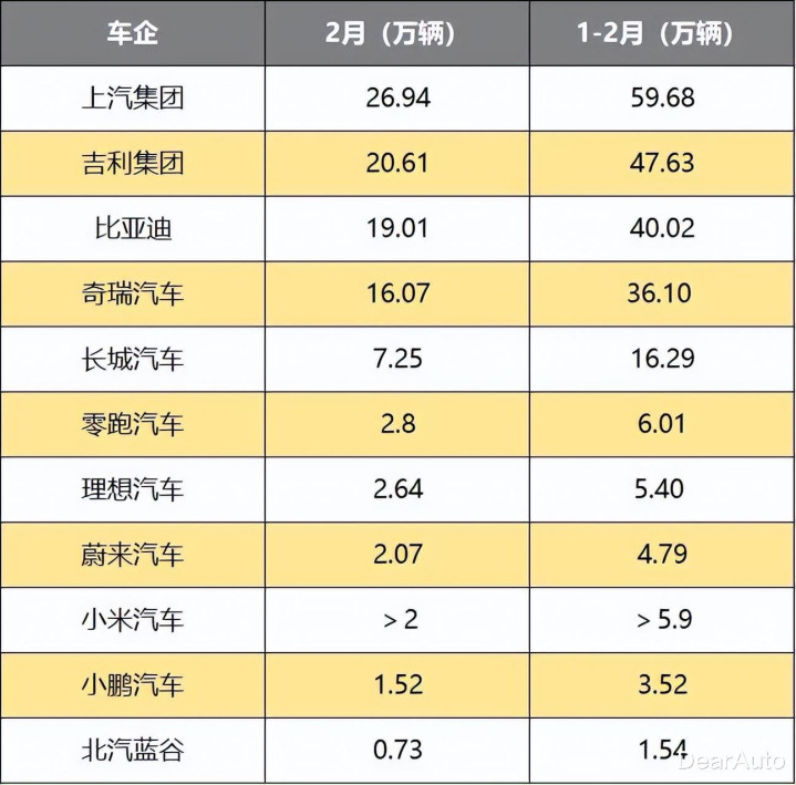 2月,上汽集团单月干了26.9万辆,1-2月累计卖了59.7万辆,同比还涨了6.8%。